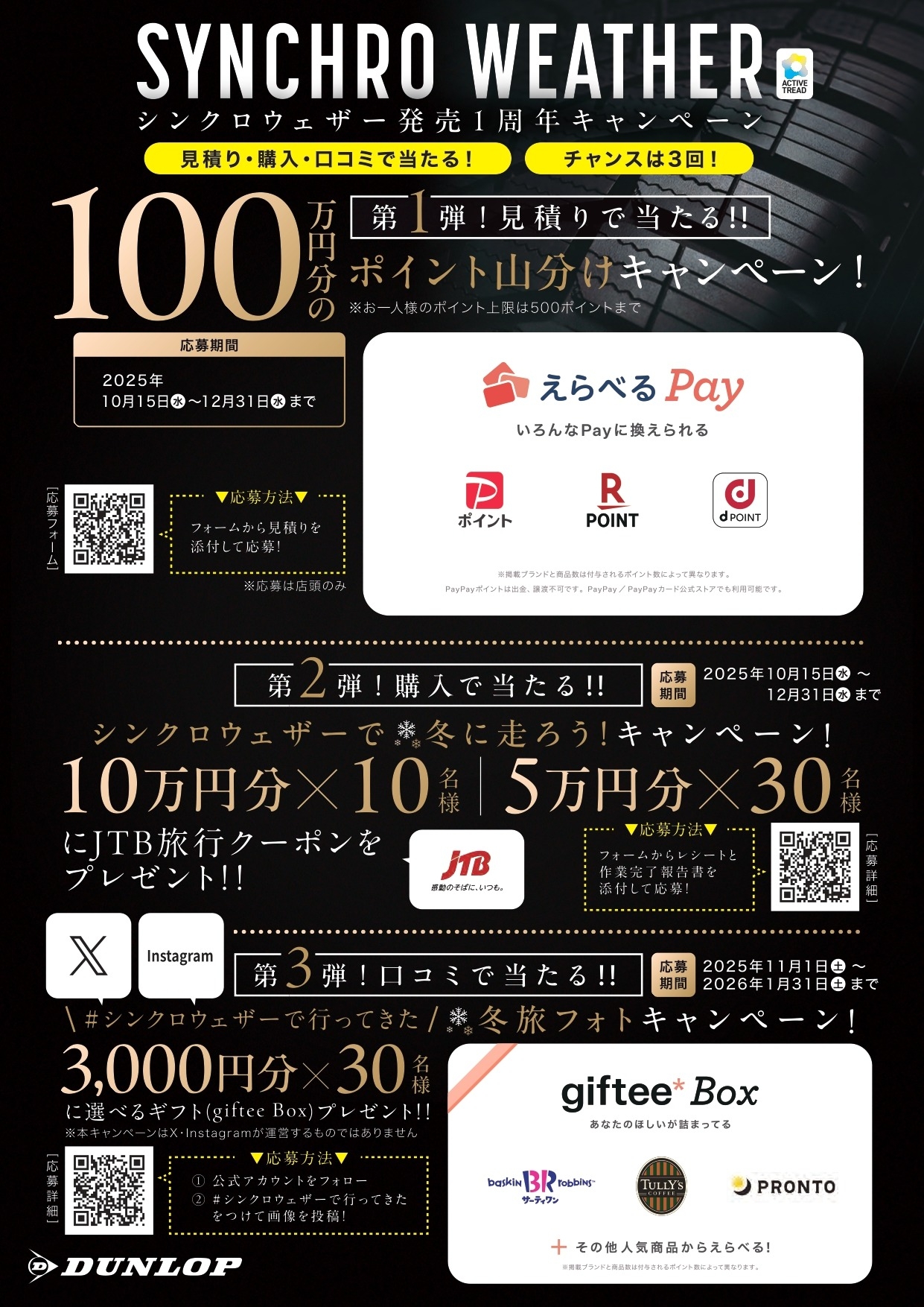 <SYNCHRO WEATHER>発売1周年キャンペーン【DUNLOP】ダンロップタイヤ 公式