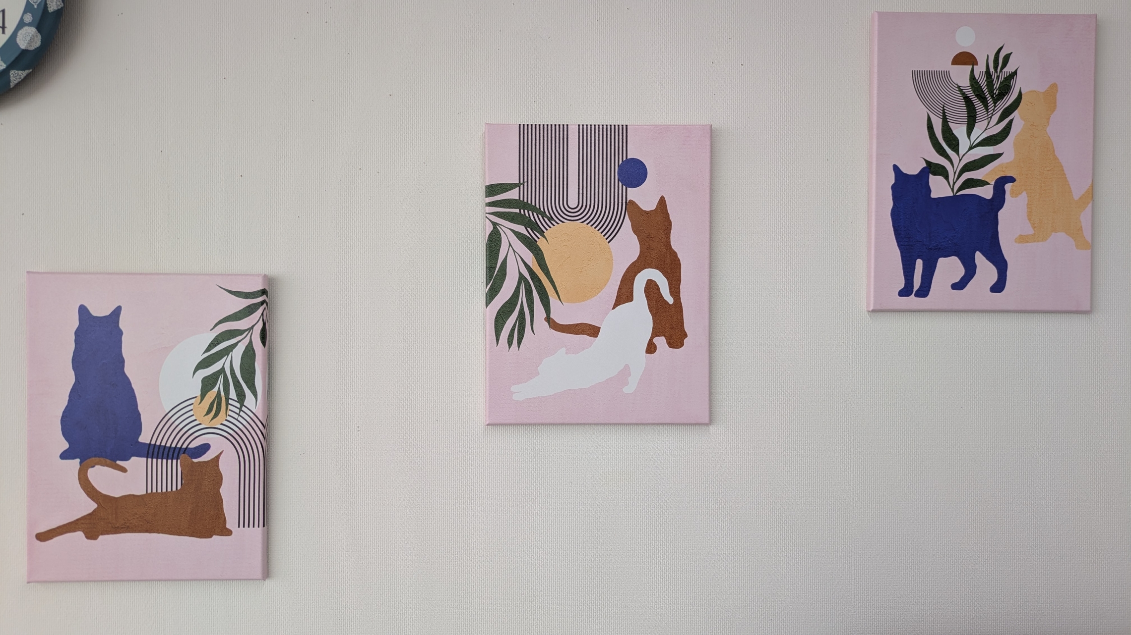 落ち着いた色合いと壁の猫ちゃんの絵が気に入っております♡