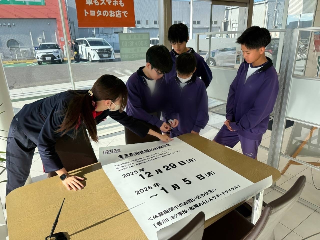 年末年始のポスターの設置をみんなで力を合わせて設置🎵