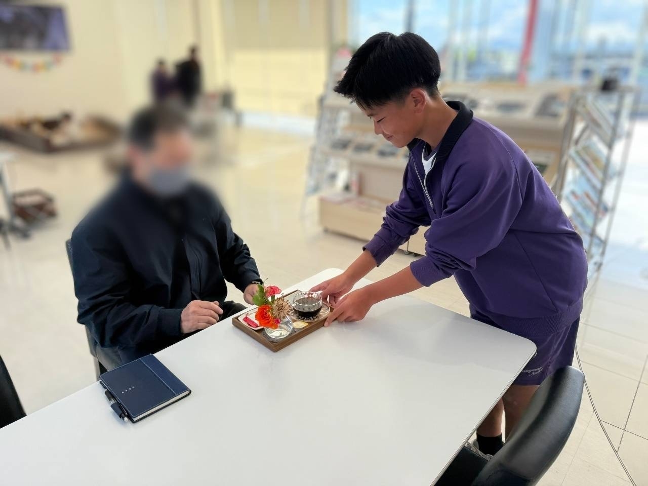 初めての体験で少し緊張しながらも笑顔で丁寧に対応
