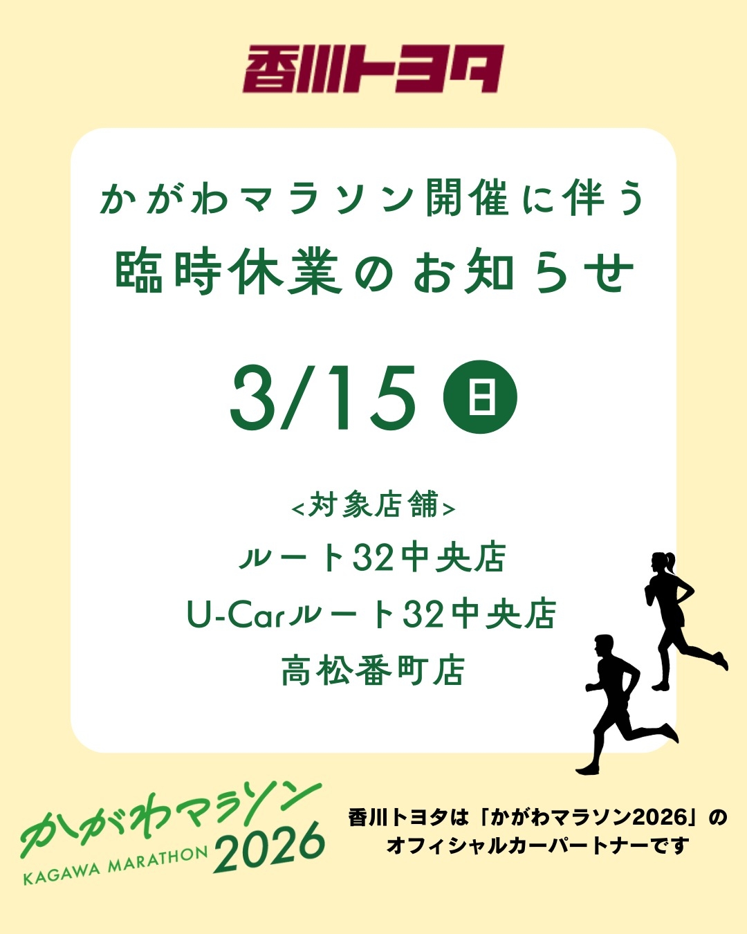 🏃かがわマラソン開催にあたり臨時休業のご案内🏃