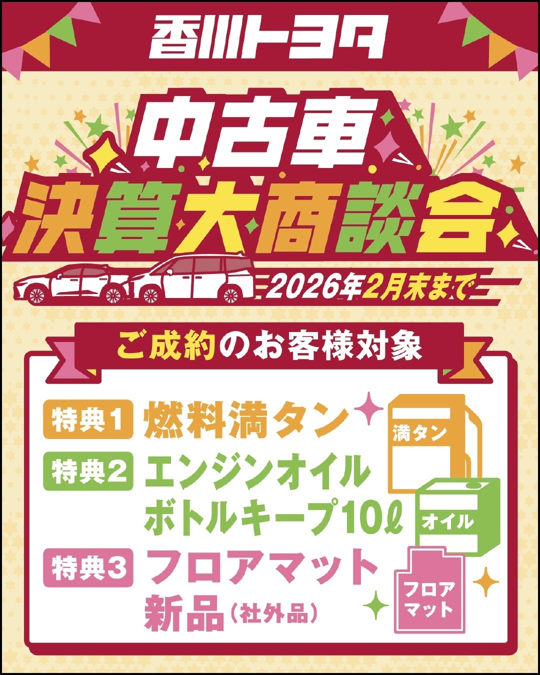 2/1(日)~2/28(土)までの1か月間中古車決算大商談会を行います!