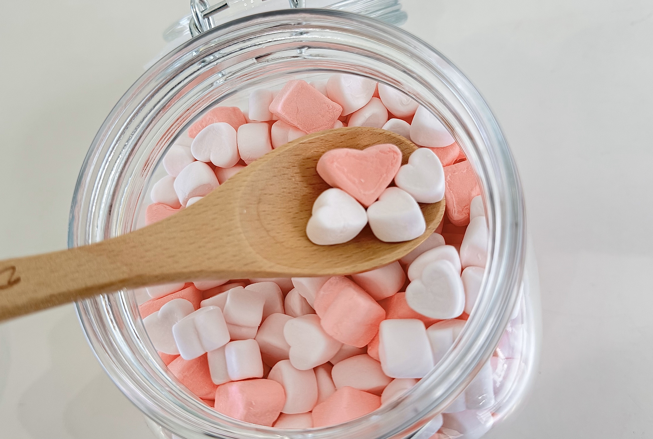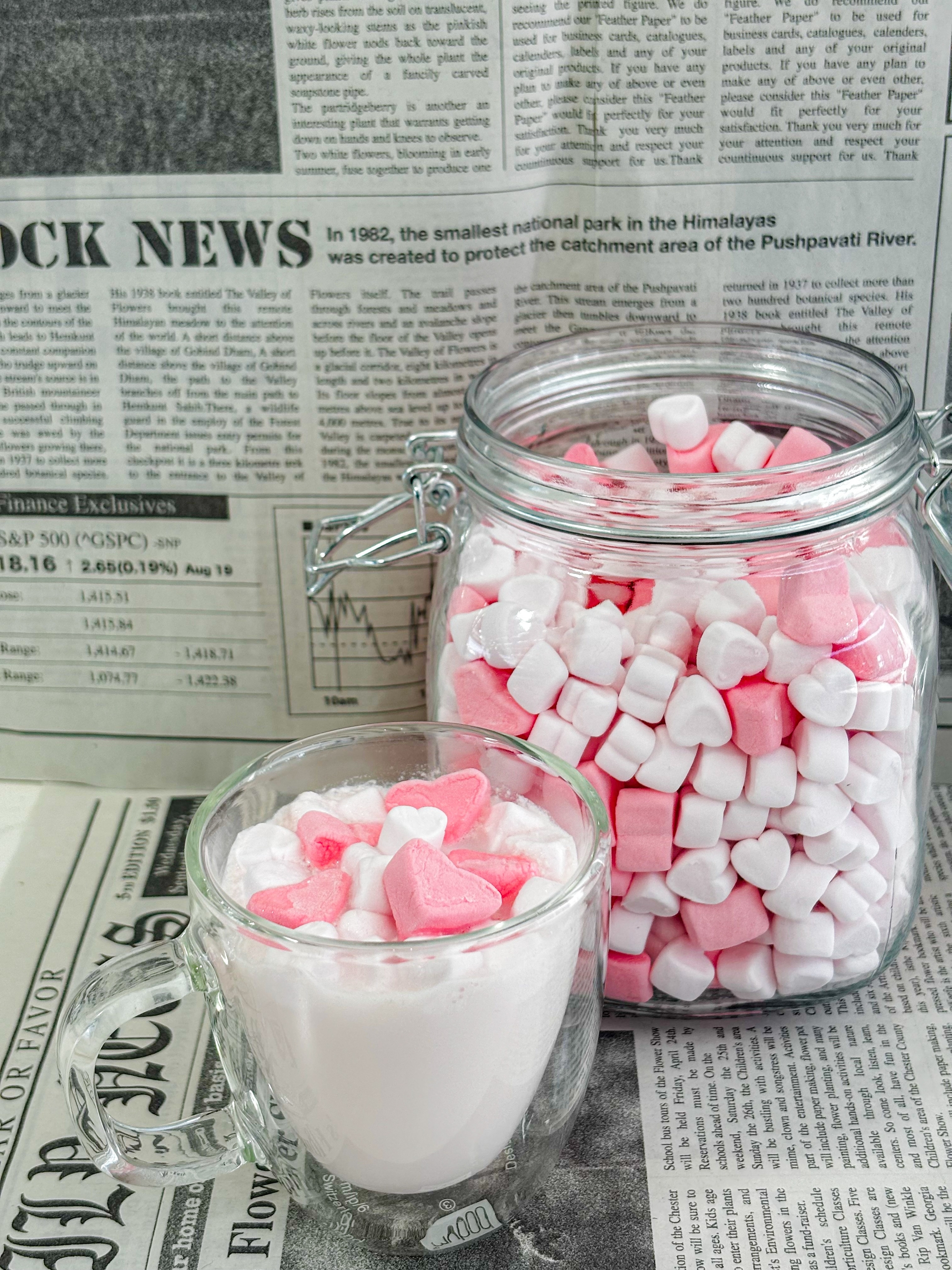 ハート型のマシュマロをトッピングしています!